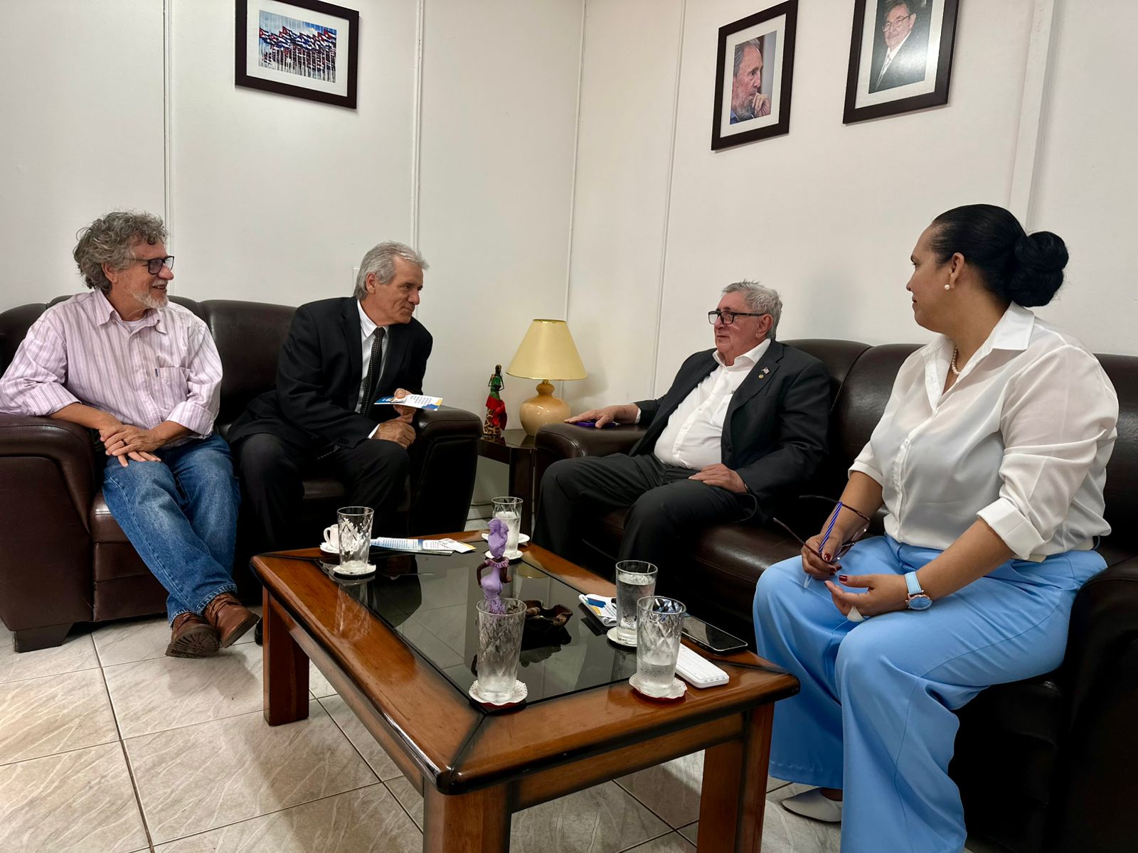 A comitiva foi recebida pelo embaixador Adolfo Curbelo Castellanos e pela conselheira Idalmys Brooks. Participaram da reunião o secretário de Representação Institucional, Washington Luiz, e o jornalista Pedro Cesar Batista.